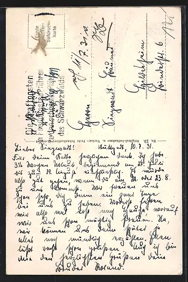 alte Ansichtskarte, gelaufen 1931, Eckknick unten li., Briefmarke entfernt, guter Zustand
