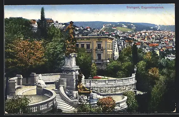 AK Stuttgart, Teilansicht mit Eugensbrunnen