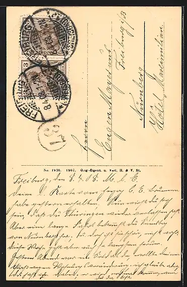alte Ansichtskarte, gelaufen 1908, Eckknick li. oben, guter Zustand