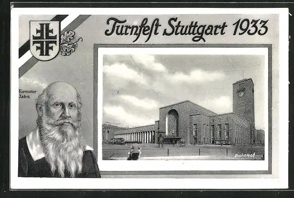 AK Stuttgart, Turnfest 1933, Bahnhof, Turnvater Jahn