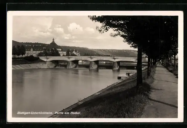 AK Stuttgart-Untertürkheim, Partie an der Neckarbrücke