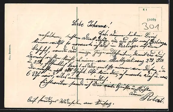 alte Ansichtskarte, ungelaufen, Bugspur re. oben, guter Zustand