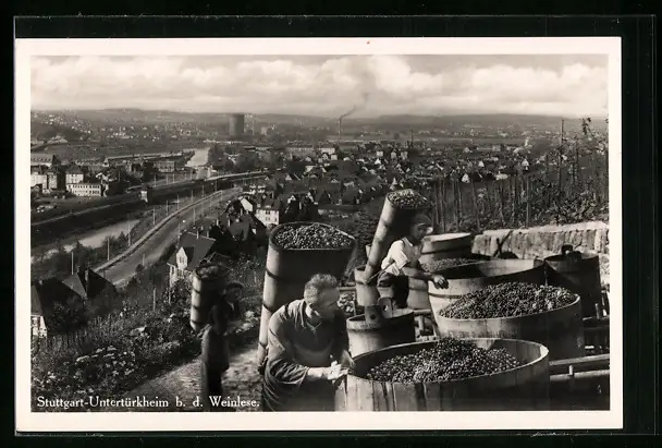 AK Stuttgart-Untertürkheim, bei der Weinlese