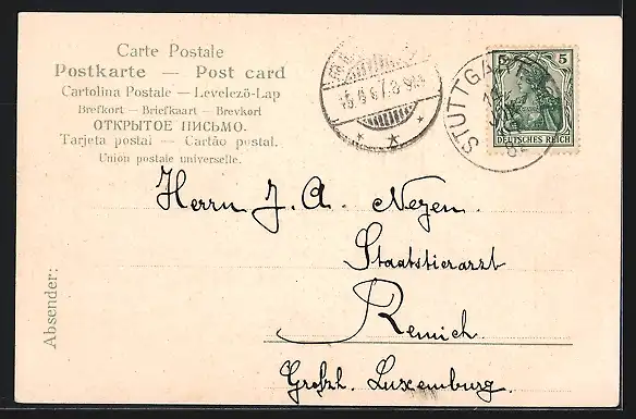 alte Ansichtskarte, gelaufen 1907, Stempelspur, guter Zustand