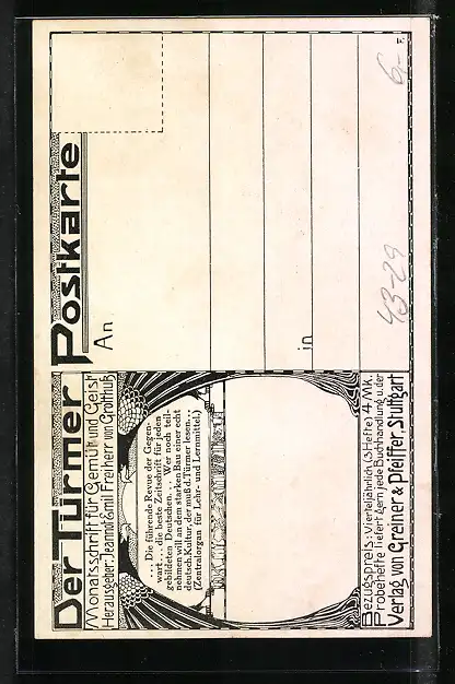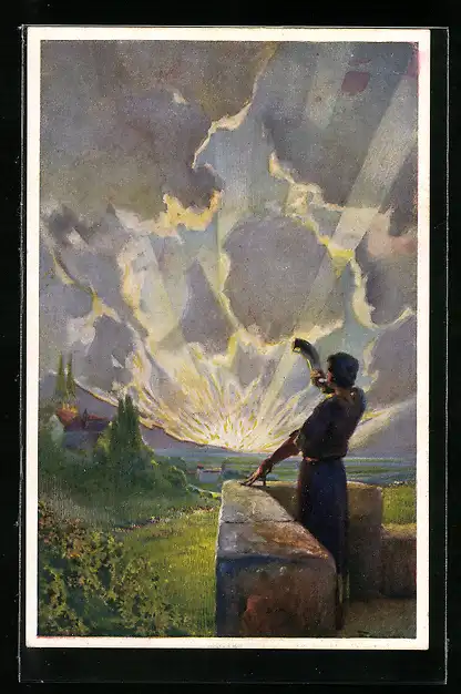 AK Stuttgart, Zeitung Der Türmer, Mann bläst in Horn gen Horizont