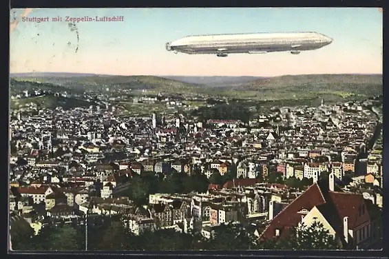 AK Stuttgart, Zeppelin-Luftschiff über der Stadt