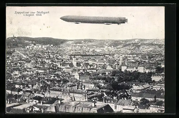 AK Stuttgart, Zeppeline über der Stadt 1908