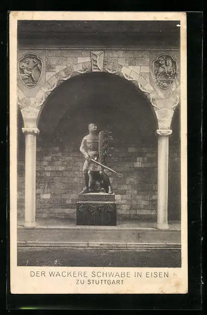 AK Stuttgart, der wackere Schwabe in Eisen, Statue, Nagelung