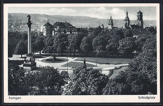 AK Stuttgart, die Säule auf dem Schlossplatz