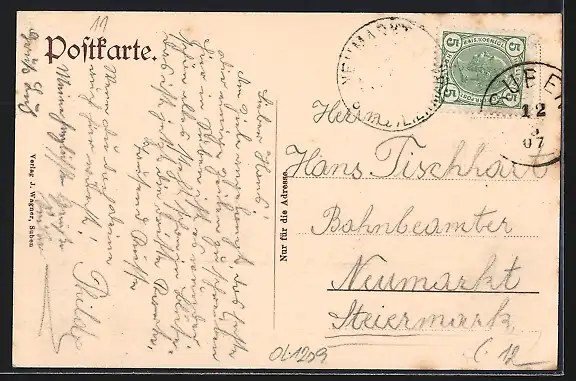 alte Ansichtskarte, gelaufen 1907, guter Zustand