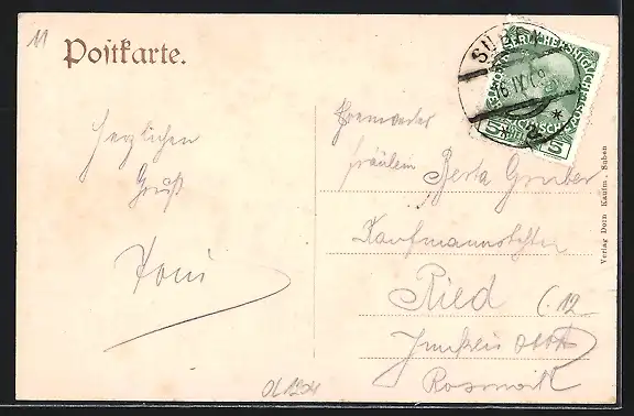 alte Ansichtskarte, gelaufen 1909, guter Zustand
