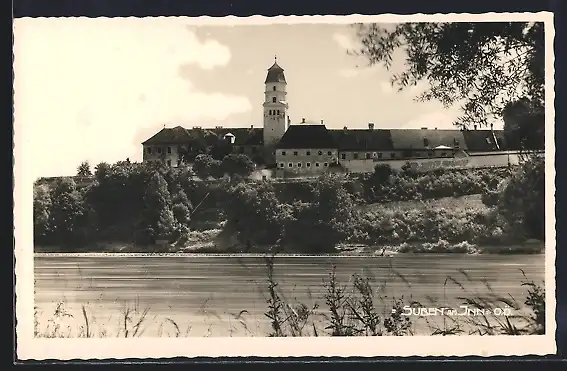 AK Suben am Inn, Flusspartie mit Ort