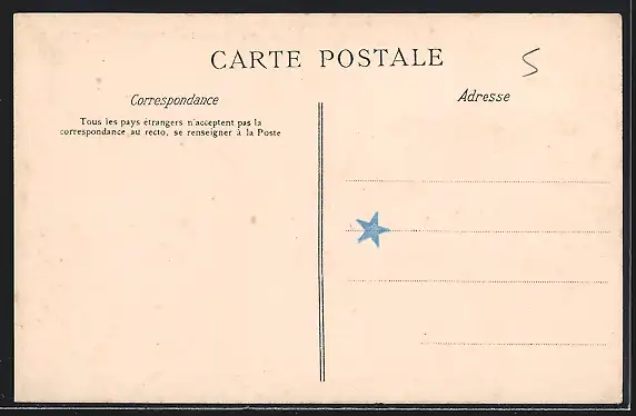 Personenbezogene Daten auf der Rückseite der Karte wurden durch blauen Textmarker unkenntlich gemacht. Die blauen Stellen sind auf die Vorderseite durchgeweicht und wirken sich negativ auf das Postkartenfoto aus