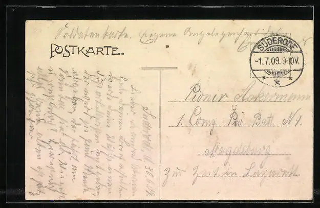 alte Ansichtskarte, gelaufen 1909 als Feldpost, guter Zustand