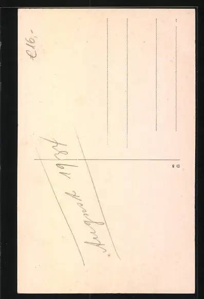 Personenbezogene Daten auf der Rückseite der Karte wurden durch blauen Textmarker unkenntlich gemacht. Die blauen Stellen sind auf die Vorderseite durchgeweicht und wirken sich negativ auf das Postkartenfoto aus