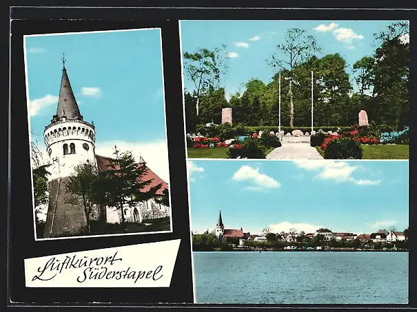 AK Süderstapel / Eider, Kirche, Ehrenmal im Park, Teilansicht der Ortschaft