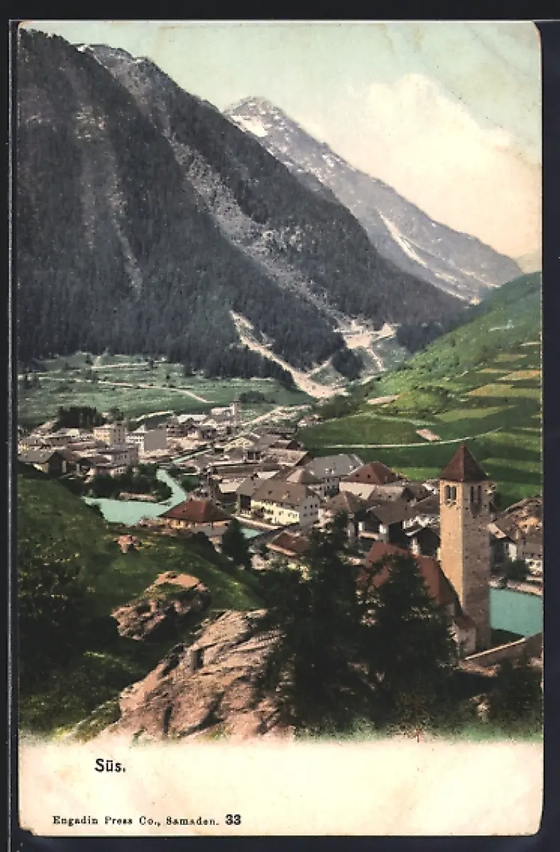 AK Süs, Ortsansicht mit Bergen