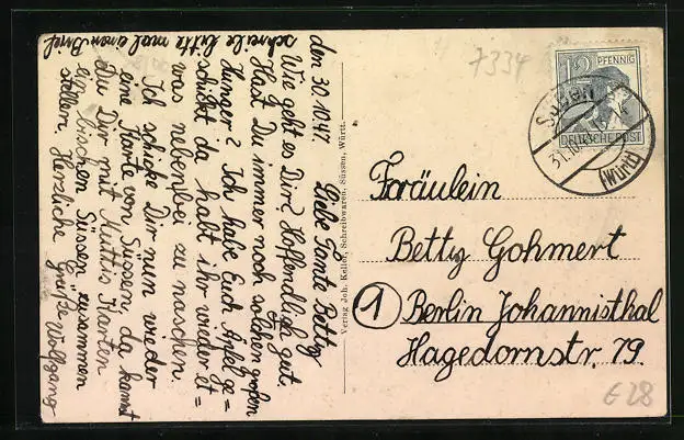 alte Ansichtskarte, gelaufen 1947, guter Zustand