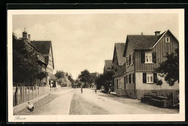 AK Süssen /Württ., Strassenpartie mit Hühnern