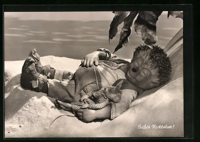 AK Süsses Nichtstun!, Mecki macht ein Schläfchen am Strand