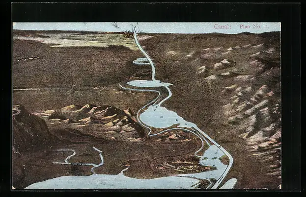 AK Suez, Ortskarte mit Verlauf des Suez Kanals