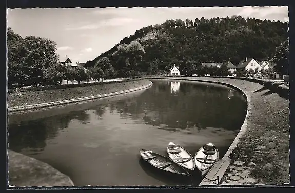 AK Sulz /Neckar, Ruderboote auf dem Fluss