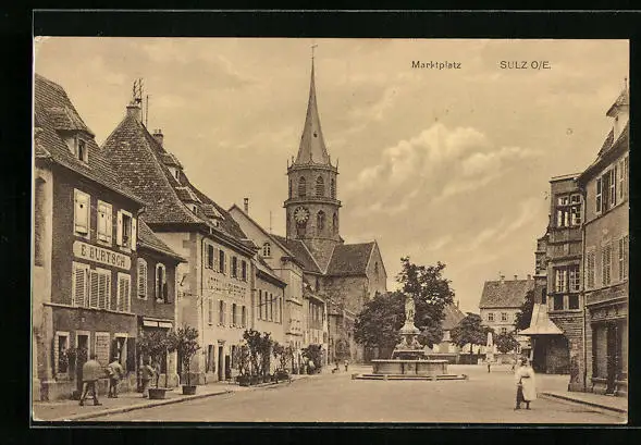 AK Sulz /O.-E., Marktplatz mit Kirche und Brunnen