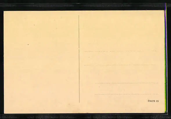Personenbezogene Daten auf der Rückseite der Karte wurden durch blauen Textmarker unkenntlich gemacht. Die blauen Stellen sind auf die Vorderseite durchgeweicht und wirken sich negativ auf das Postkartenfoto aus
