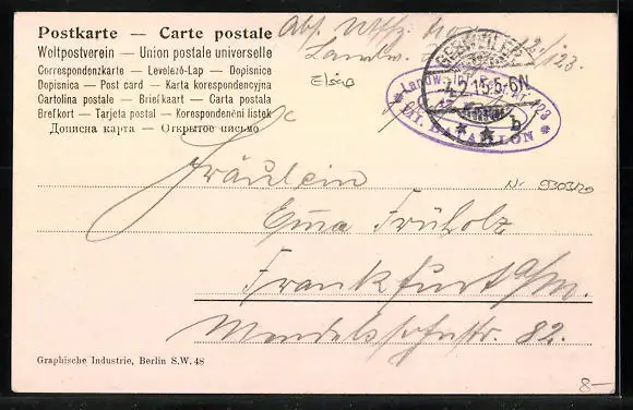 alte Ansichtskarte, gelaufen 1915 als Feldpost, guter Zustand