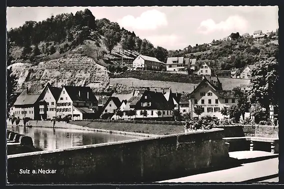 AK Sulz a. Neckar, Uferpartie mit Textilwarengeschäft