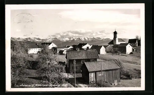 AK Sulzberg, Alpenpanorama mit Kirche