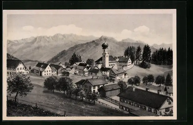 AK Sulzberg, Ortsansicht gegen das Gebirge