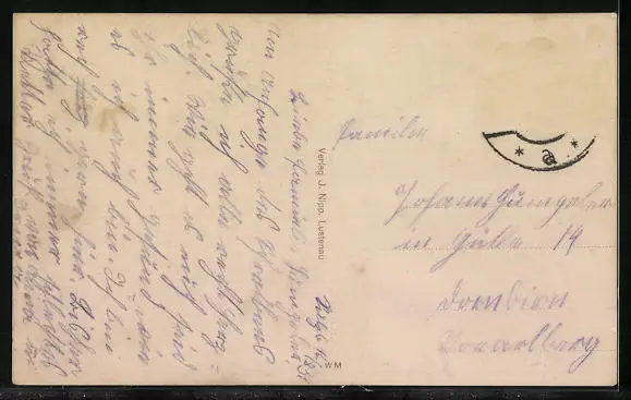 alte Ansichtskarte, gelaufen, Briefmarke entfernt, guter Zustand