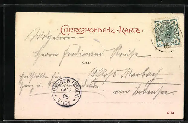 alte Ansichtskarte, gelaufen 1905, guter Zustand