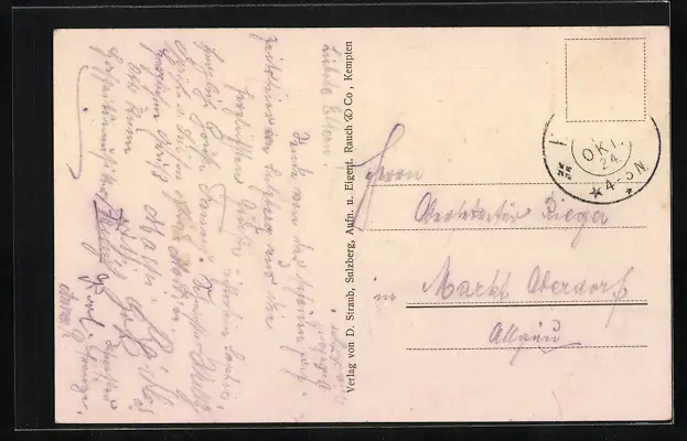 alte Ansichtskarte, gelaufen 1924, Briefmarke entfernt, rückseitig Klebe- und Papierreste, guter Zustand