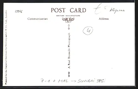 Personenbezogene Daten auf der Rückseite der Karte wurden durch blauen Textmarker unkenntlich gemacht. Die blauen Stellen sind auf die Vorderseite durchgeweicht und wirken sich negativ auf das Postkartenfoto aus
