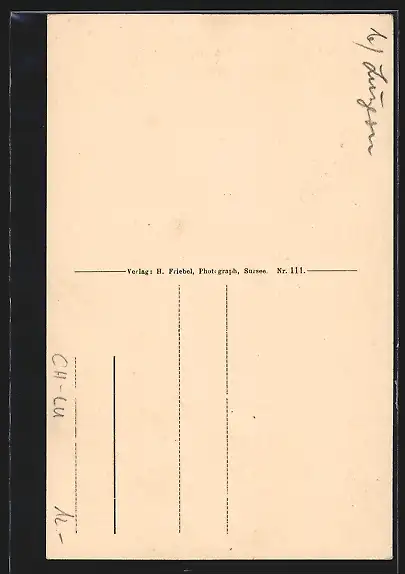 Personenbezogene Daten auf der Rückseite der Karte wurden durch blauen Textmarker unkenntlich gemacht. Die blauen Stellen sind auf die Vorderseite durchgeweicht und wirken sich negativ auf das Postkartenfoto aus