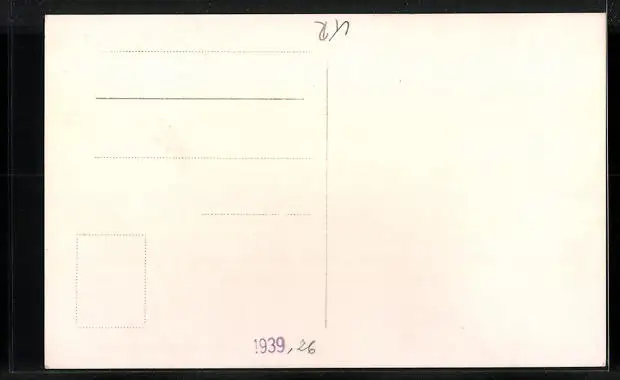Personenbezogene Daten auf der Rückseite der Karte wurden durch blauen Textmarker unkenntlich gemacht. Die blauen Stellen sind auf die Vorderseite durchgeweicht und wirken sich negativ auf das Postkartenfoto aus