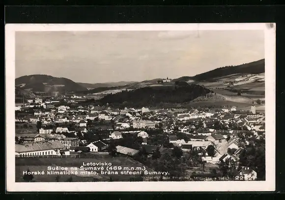 AK Susice na Sumave, Ortsansicht mit Kirche