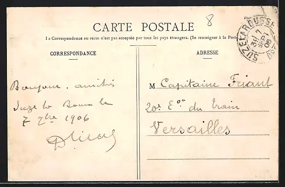 gelaufen 1906, Eckknick oben li., guter Zustand
