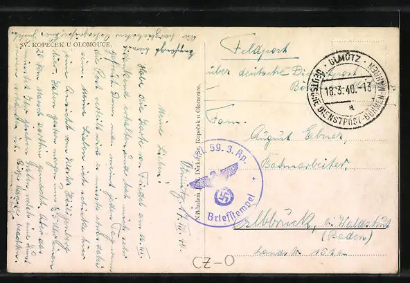 alte Ansichtskarte, gelaufen 1940 als Feldpost, guter Zustand