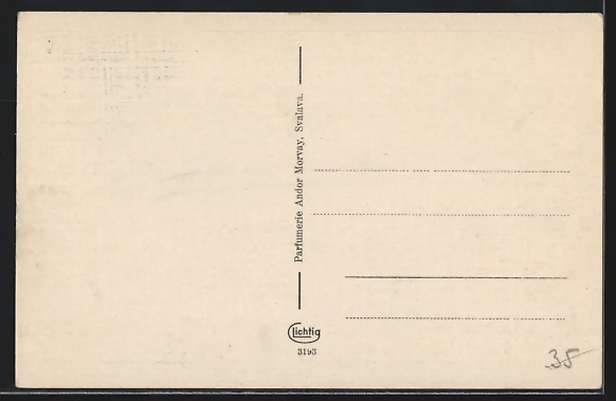 Personenbezogene Daten auf der Rückseite der Karte wurden durch blauen Textmarker unkenntlich gemacht. Die blauen Stellen sind auf die Vorderseite durchgeweicht und wirken sich negativ auf das Postkartenfoto aus