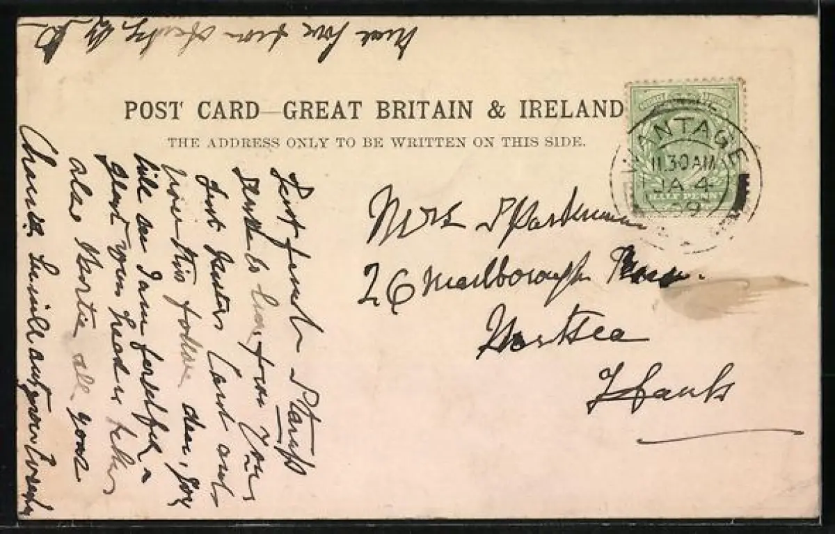 gelaufen 1909, Eckknicke li. unten u. re. oben, guter Zustand