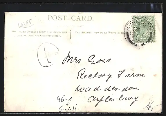 gelaufen 1906, Eckknicke li. oben u. re. unten, guter Zustand