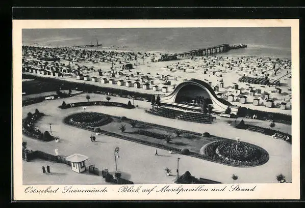 AK Swinemünde, Blick auf Musikpavillon und Strand