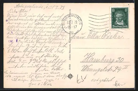 alte Ansichtskarte, gelaufen 1928, guter Zustand