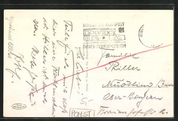 alte Ansichtskarte, gelaufen, Briefmarke entfernt, guter Zustand