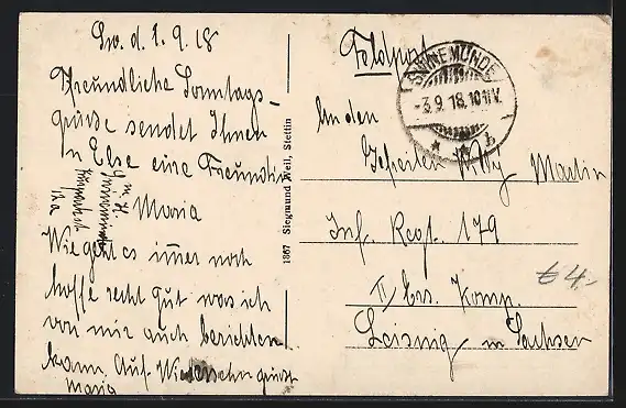 alte Ansichtskarte, gelaufen 1918, guter Zustand
