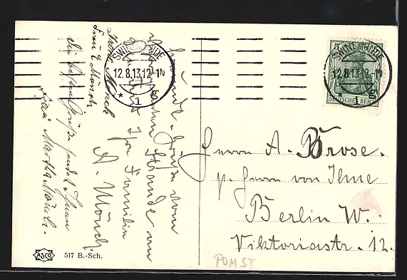 alte Ansichtskarte, gelaufen 1913, Stempelspur, guter Zustand