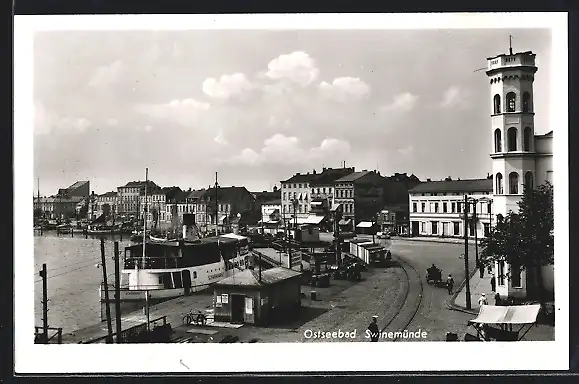 AK Swinemünde, Hafenpartie mit Turmgebäude